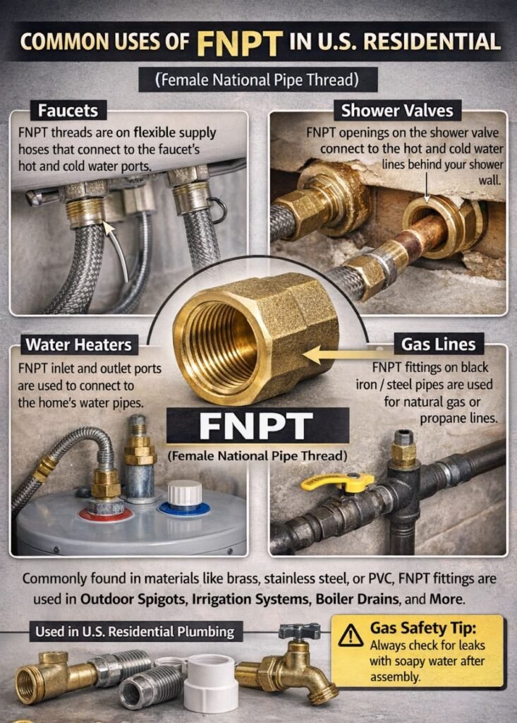 FNPT threads are extremely common in residential plumbing throughout the United States and are regulated under ANSI (American National Standards Institute) standards.